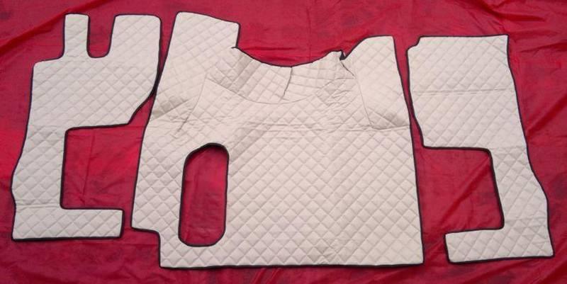 Autokoberec pro nákladní vozy ušité z kvalitní koženky prošité do čtverců a jsou určeny na vůz VOLVO FH, rok výroby 2002 - 2008, provedení automat, sada koberců se skládá ze tří kusů.