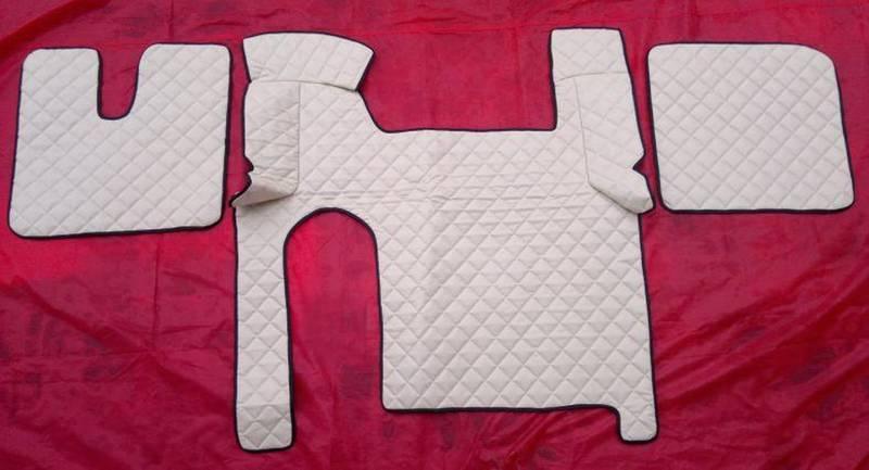 Autokoberec pro nákladní vozy ušité z kvalitní koženky prošité do čtverců a jsou určeny na vůz MAN TGX, 2 kastlíky, pro provedení manuál, sada se skládá ze tří koberců.
