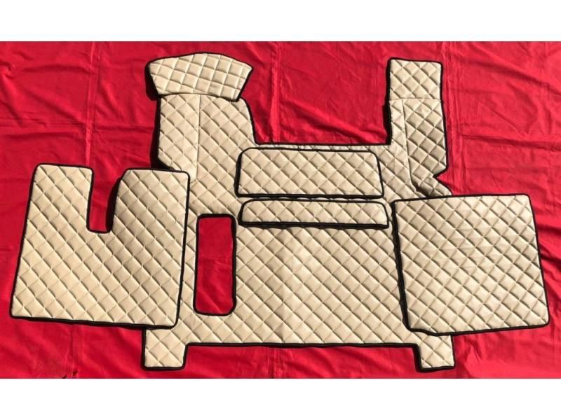 Autokoberec pro nákladní vozy ušité z kvalitní koženky prošité do čtverců a jsou určeny na vůz MAN TGX, od roku výroby 2017 ->, 2 kastlíky, pro provedení automat, sada se skládá ze tří koberců.