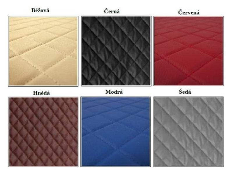 Tyto přesné koberce se vyrábějí vždy na daný typ vozu z kvalitní koženky, která je prošitá do čtverců a obšita lemovkouv. Koženka je dostupná v sedmi různých barvách a to béžová, šedá, černá, modrá, červená, hnědá a bílá