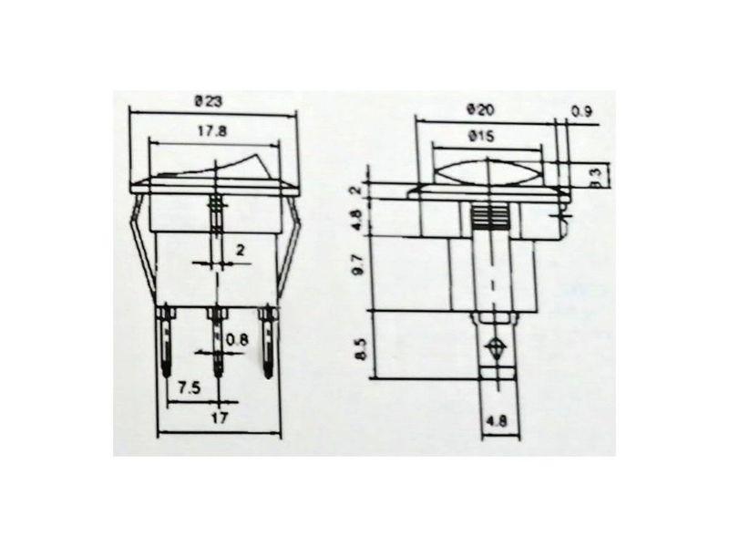 Kulatý kolébkový vypínač s kontrolkou barva kontrolky červená průmět vypínače 23…