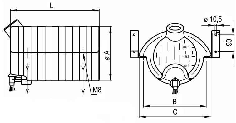 Dávkovač mýdla není součástí nádrže. Upozornění: při upevnění nádrže k držákům použijte šroub M8 s max. délkou 20 mm,