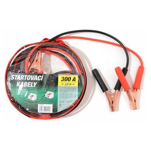 Klasické startovací kabely, barevně označené, se svorkami na akumulátor 2x 2,5 metru pro max. 300 A.