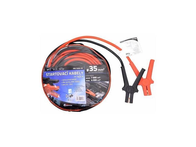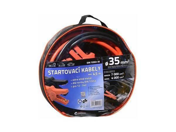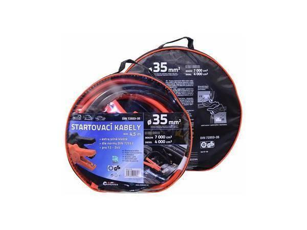 Vysoce kvalitní startovací kabely odpovídají požadavkům evropské normy DIN 72553-35 a jsou způsobilé pro napětí od 12V do 24V. Kabely jsou vyrobeny z mědí potažených hliníkových kabelů, které jsou izolovány a vybaveny kompletně izolovanými kleštěmi pro připojení k akumulátoru.