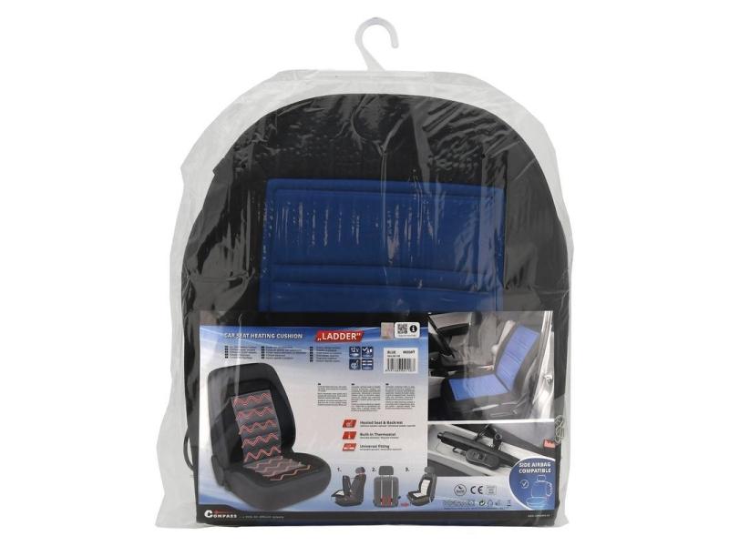 Univerzální vyhřívaný potah na sedadlo LADDER modrý, zesílená konstrukce, napájení 12V konektorem do zásuvky automobilového zapalovače.