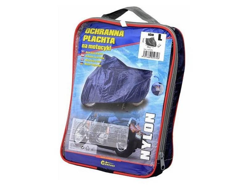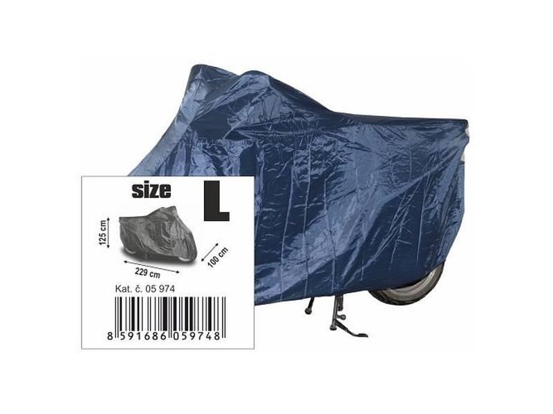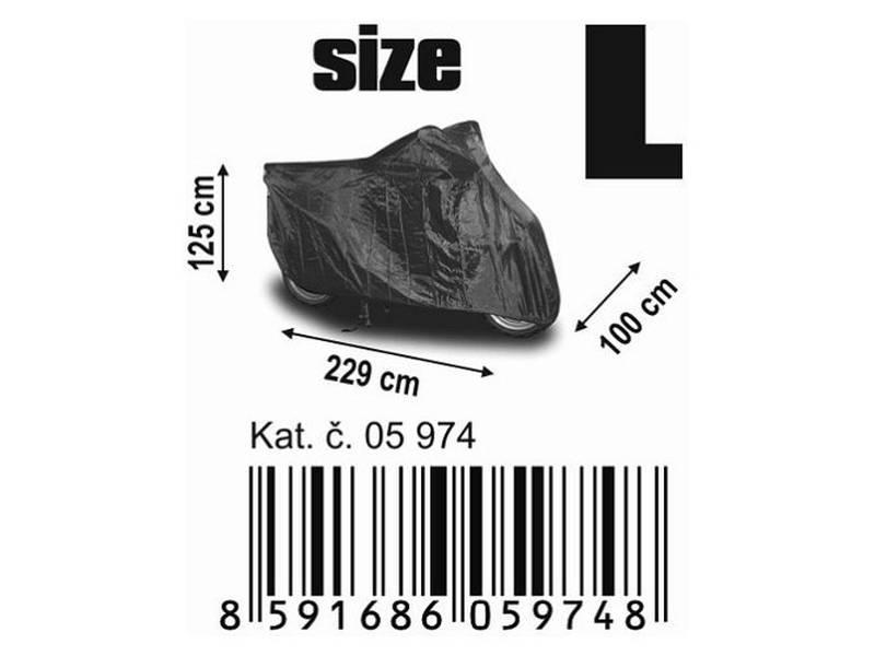 Ochranná plachta na motocykl, velikosti L, o rozměru 229 x 100 x 125 cm, materiál NYLON.