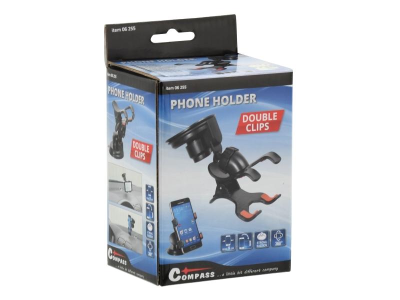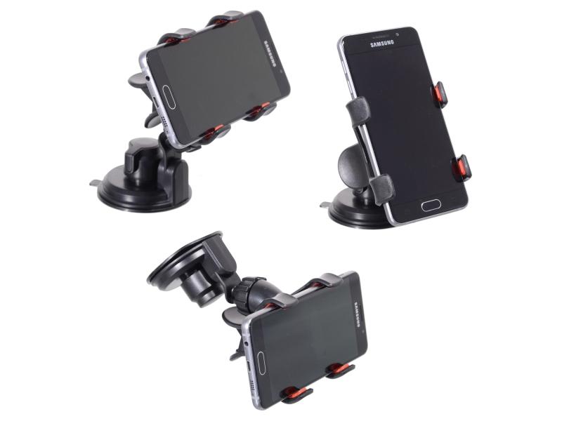 Držák telefonu s extra silnou přísavkou a klipsem pro uchycení telefonu či navigace až do šířky (nebo výšky) 10 cm. Díky možnosti otáčení o 360° je možné…