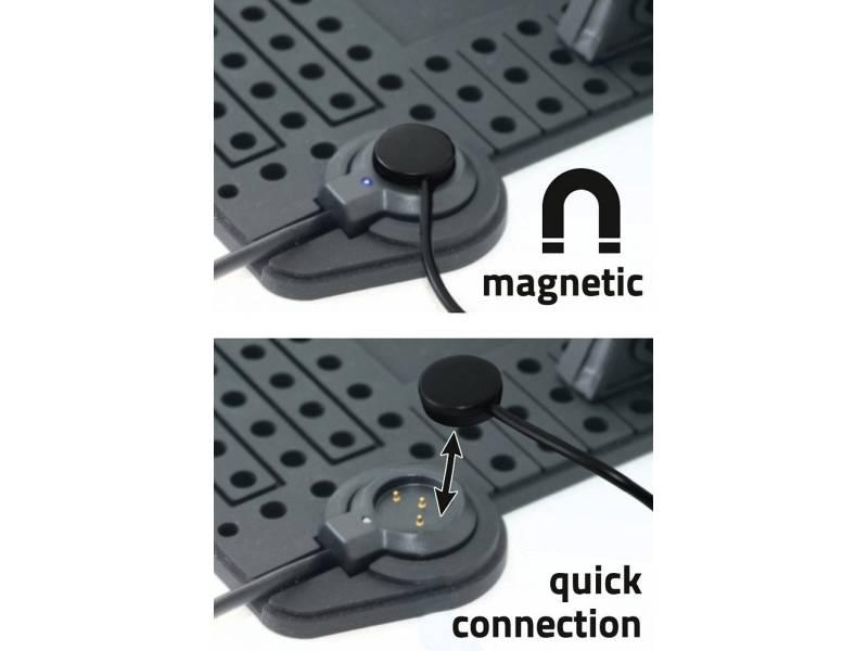 Unikátní systém „magnetic quick connection“ umožňuje rychlé sejmutí telefonu z nabíječky.