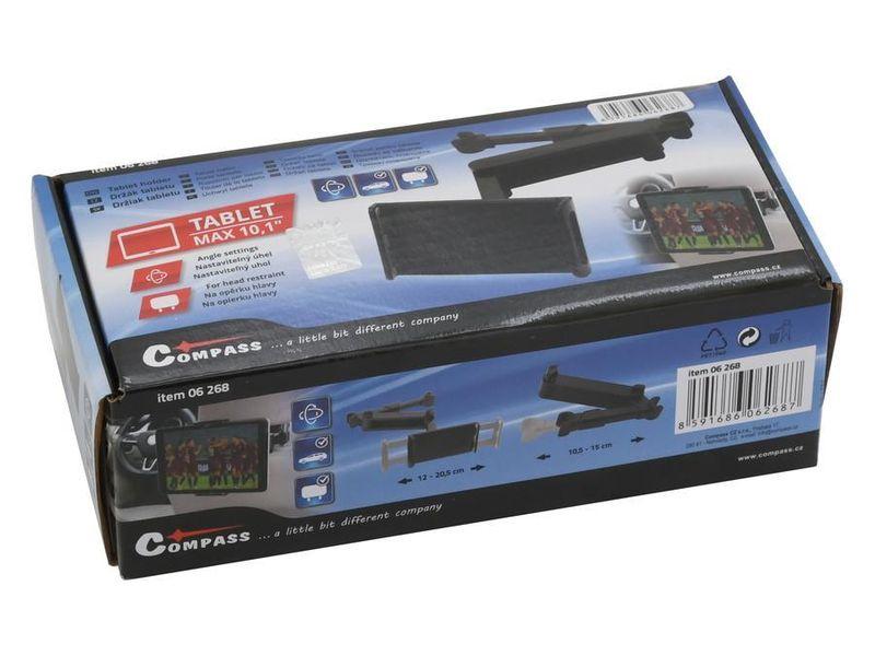 Držák pro tablet pro upevnění na opěrku hlavy.