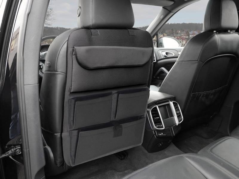 Organizér k připevnění na zadní stranu předního sedadla s možností upevnění tabletu. Upevnění horní části pomocí popruhů za opěrku hlavy, spodní části…