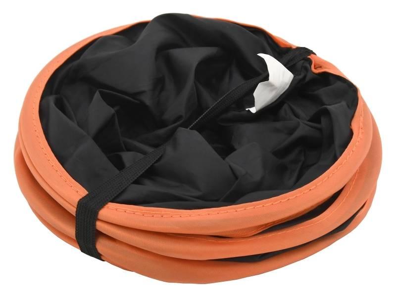 Koš s rozměry 16 x 20 cm je zhotoven ze 100% polyesteru, kvalitně obšitého oranžovým lemem.