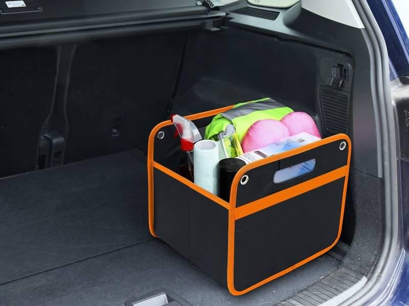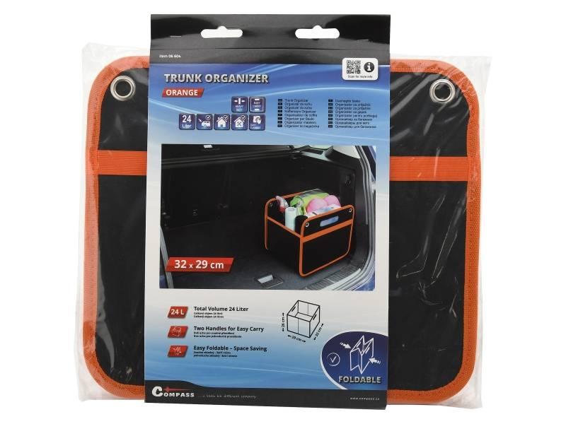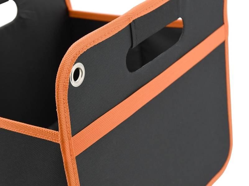 Organizér s rozměry 32 x 29 x 26 cm je zhotoven ze 100% polyesteru, kvalitně obšitého oranžovým lemem.
