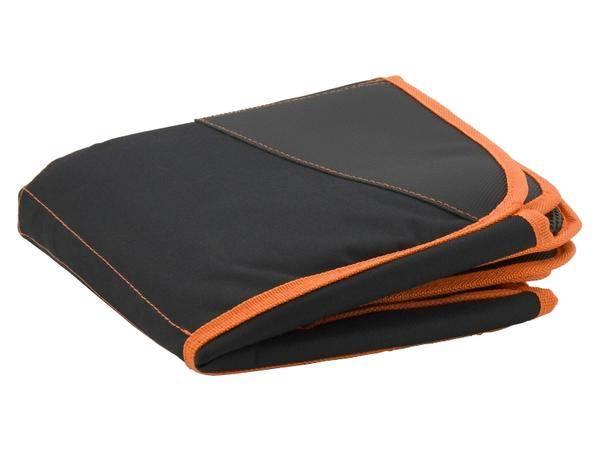 Praktický ochranný potah o rozměrech 48 x 83 cm zhotovený z odolného polyesteru, obšitého oranžovým lemem.