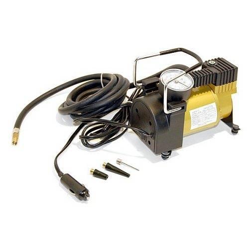 Elektrický kompresor 12V s manometrem 250 PSI Příslušenstí jsou 3 koncovky Přípojný kabel délky 2,8…