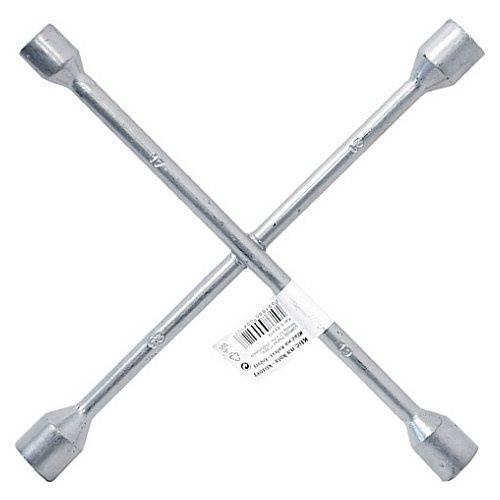 Křížový klíč vhodný k snadnému utahování a povolování matic kol o rozměrech 17, 19, 21 a 23 mm.