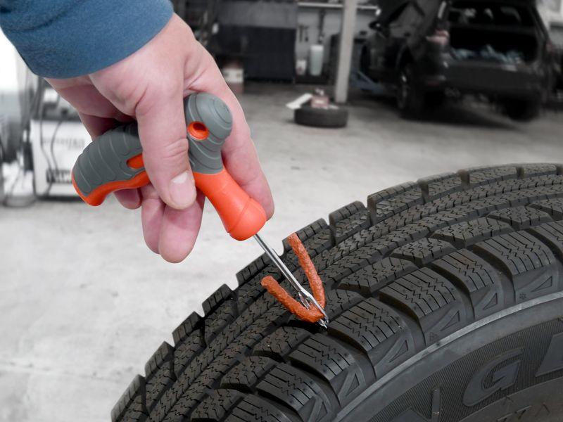 Ergonomická sada pro rychlé opravy bezdušových pneumatik, bez nutnosti demontáže pláště z disku.