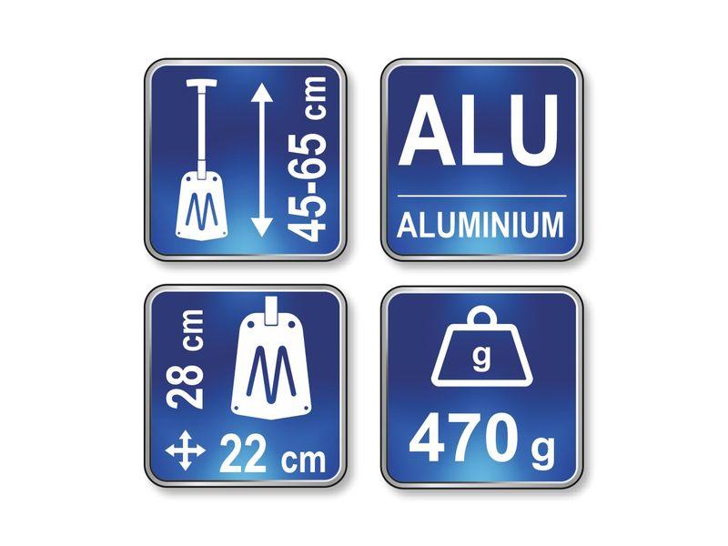 Lopata je vyjma ergonomické, plastové rukojeti tvořena kompletně z hliníku.