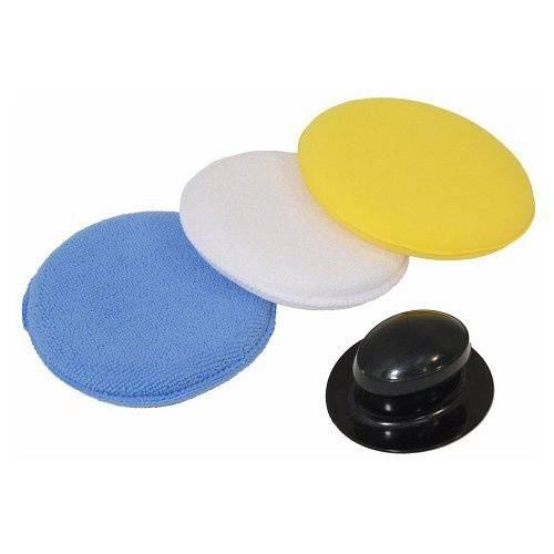 Sada pro leštění pomocí středně hrubých, jemných brusných a renovačních past, ale i následné voskování, aplikaci sealantů a finální leštění laku…