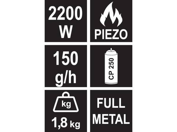 Pro pohodlné a rychlé použití slouží piezoelektrické zapalování a regulace průtoku plynu, pro přesné nastavení velikosti plamenu.