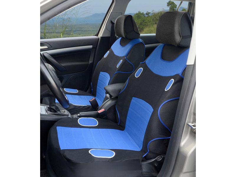 Potahy sedadel SPORT modré s univerzálním systémem upevnění, sada na celý vůz vhodné pro sedačky s airbagy(2x přední sedadlo a zadní sedadla, 5x opěrka…