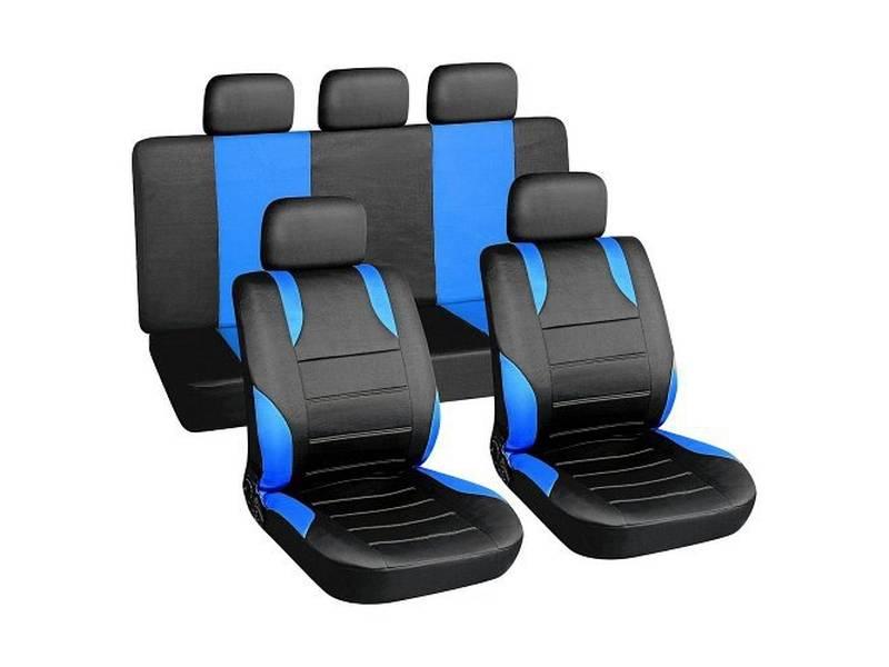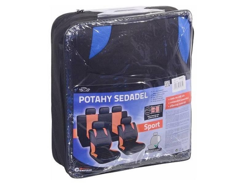 Potahy sedadel SPORT modré s univerzálním systémem upevnění, sada na celý vůz vhodné pro sedačky s airbagy(2x přední sedadlo a zadní sedadla, 5x opěrka hlavy).