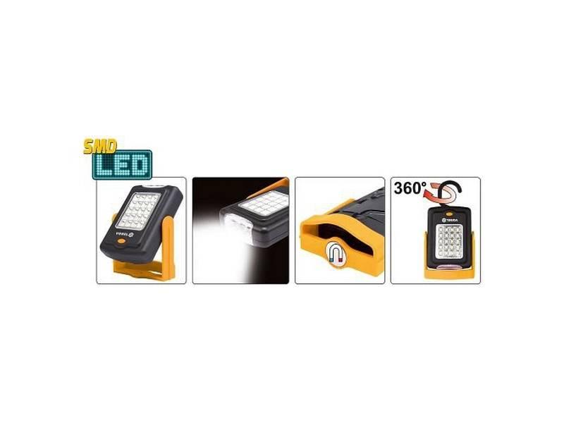Přenosná pracovní svítilna osazená vysoce svítivými SMD LED diodami s nízkou spotřebou.