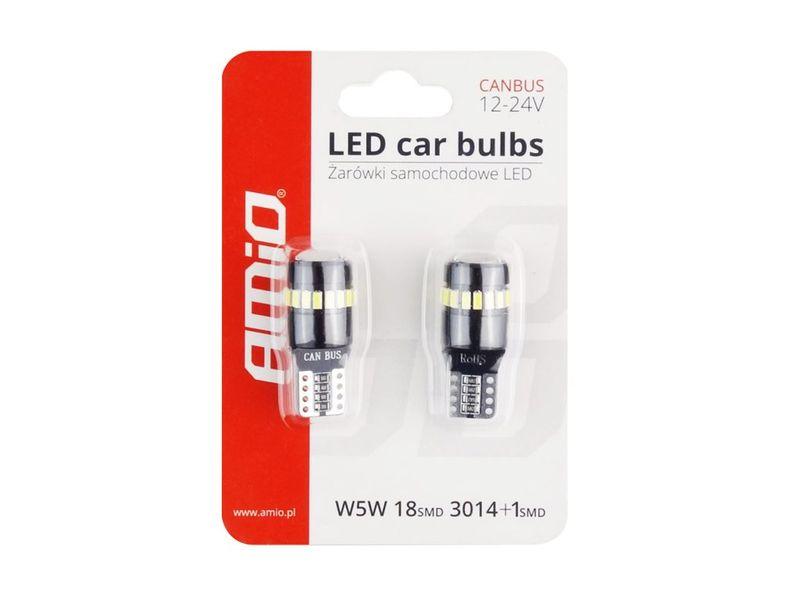 Autožárovka 12 i 24 Voltů LED 24xSMD T10 (W5W) bílá, CAN-BUS. Autožárovky AMiO LED jsou moderním řešením využívajícím technologii LED. Použité diody vyzařují…