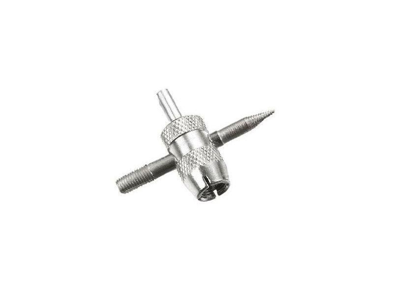 Závitník na opravu závitů vnitřních i ventovních na ventilku automobilu s klíčrm na vytáčení ventilků.