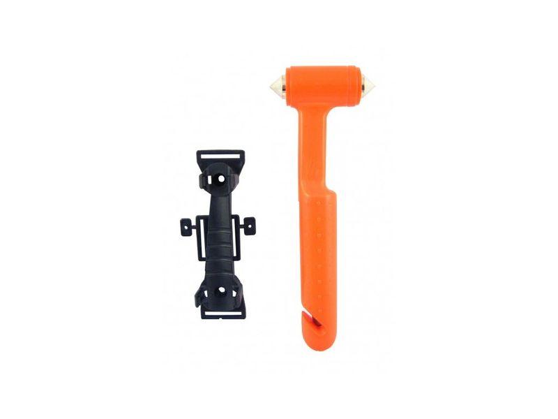 Bezpečnostní kladívko na rozbití oken, součástí je i řezač bezpečnostních pásů