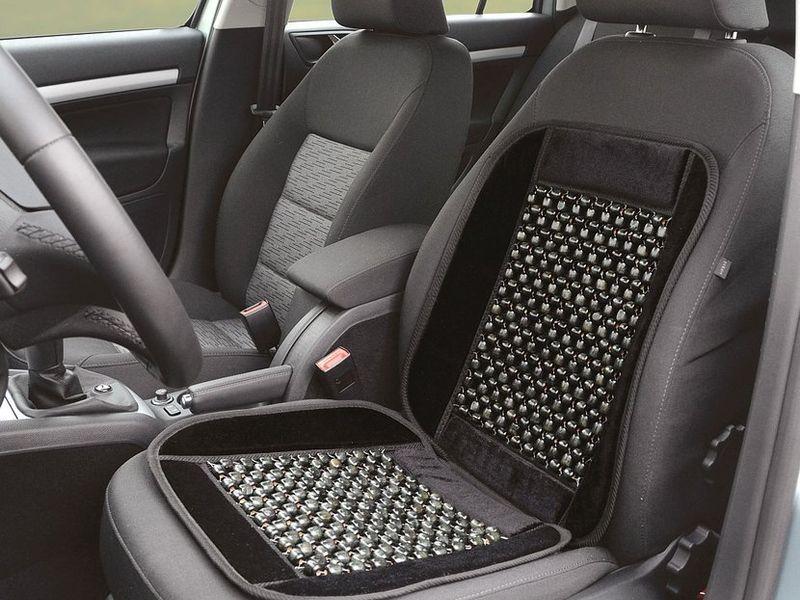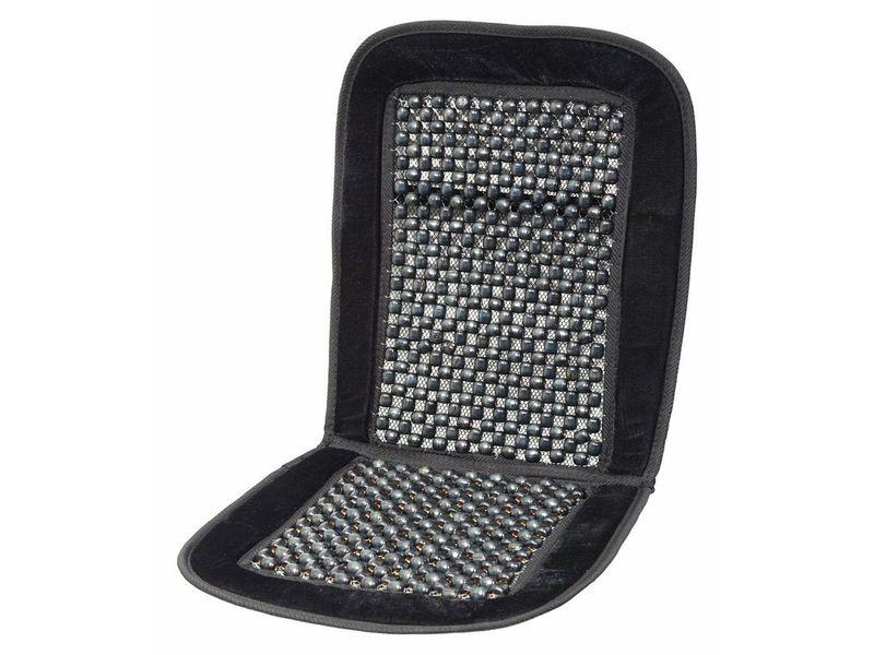 Potah s pevným lemem, výplň z dřevěných kuliček, které příjemně masírují tělo, podporují krevní oběh, pomáhají snižovat únavu i bolestivost zad a umožňují proudění vzduchu mezi sedadlem a zády řidiče.