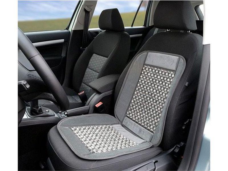 Potah s pevným lemem, výplň z dřevěných kuliček, které příjemně masírují tělo, podporují krevní oběh, pomáhají snižovat únavu i bolestivost zad a umožňují proudění vzduchu mezi sedadlem a zády řidiče.