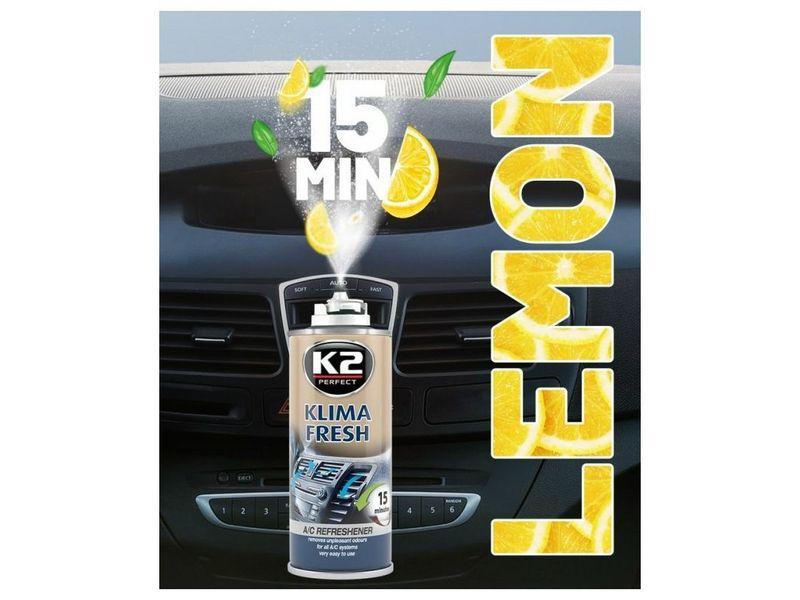 Vysoce efektivní a snadno použitelný prostředek K2 KLIMA FRESH 150 ml LEMON pro osvěžení vzduchu ve vašem autě.