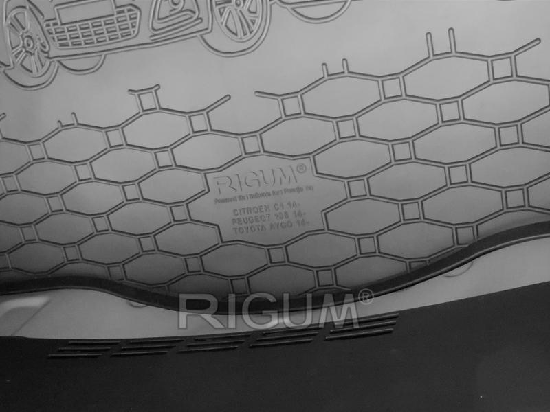 Gumový koberec do kufru neboli gumová vana do zavazadlového prostoru vozu Peugeot 108, od roku výroby 2014 ->, v černém protiskluzovém provedení do České firmy Rigum s.r.o., která přesně kopíruje kufr Vašeho vozu.