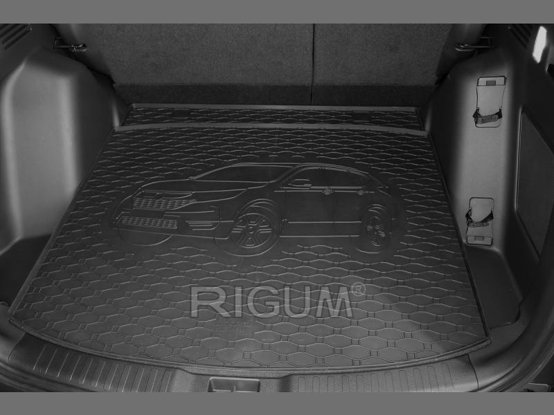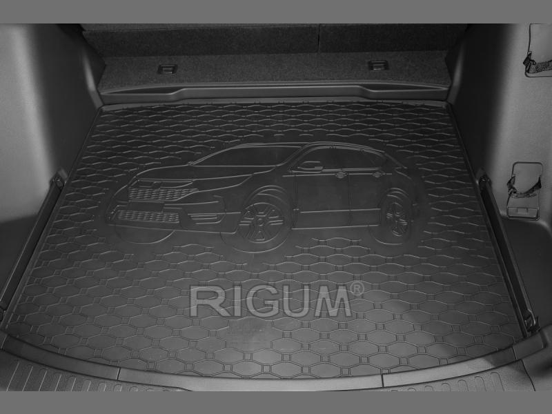 Gumový koberec do kufru (gumová vana do zavazadlového prostoru) vozu Honda CR-V, od roku výroby 2018 ->, 5 míst pro horní i dolní pozici v černém protiskluzovém provedení do českého výrobce Rigum s.r.o., který přesně kopíruje kufr Vašeho vozu.