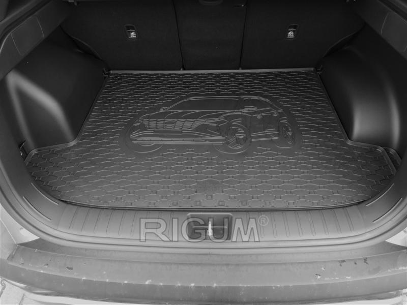 Gumový koberec do kufru (gumová vana do zavazadlového prostoru) vozu Hyundai Tuscon HEV Hybrid, od roku výroby 2021 ->, v černém protiskluzovém provedení do českého výrobce Rigum s.r.o., který přesně kopíruje kufr Vašeho vozu.