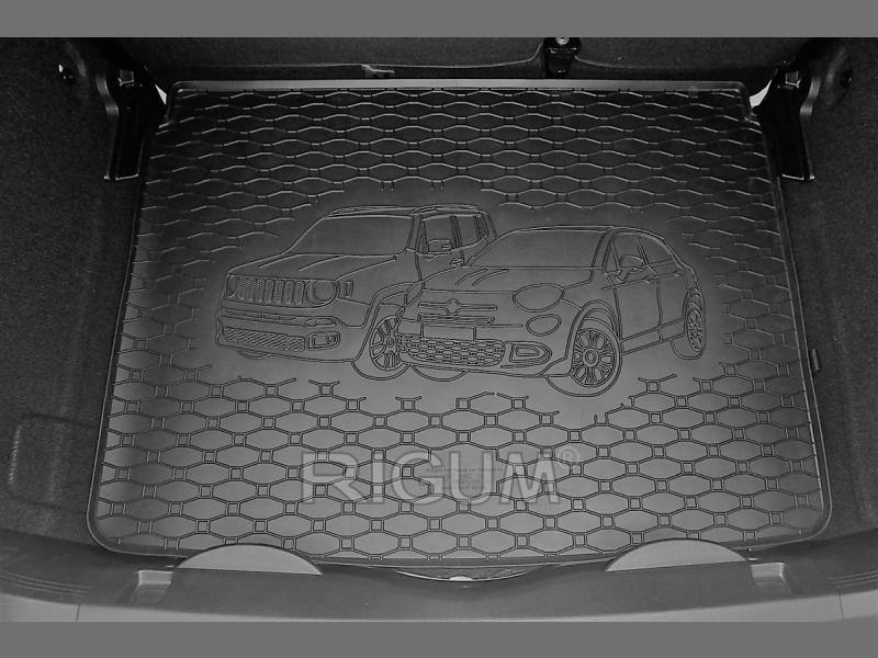 Gumový koberec do kufru (gumová vana do zavazadlového prostoru) vozu Jeep Renegade, od roku výroby 2014 ->, pro horní i dolní pozici v černém protiskluzovém provedení do českého výrobce Rigum s.r.o., který přesně kopíruje kufr Vašeho vozu.