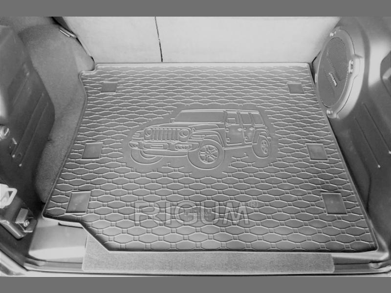 Gumový koberec do kufru (gumová vana do zavazadlového prostoru) vozu Jeep Wrangler, od roku výroby 2006 ->, v černém protiskluzovém provedení do českého výrobce Rigum s.r.o., který přesně kopíruje kufr Vašeho vozu.