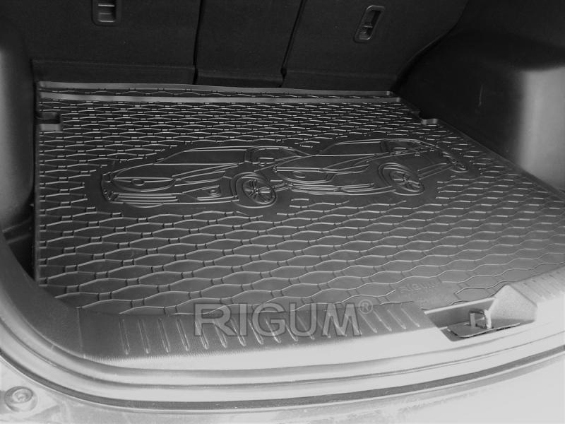 Gumový koberec do kufru (gumová vana do zavazadlového prostoru) vozu Mazda CX-5 hatchback, pro horní polohu, od roku výroby 2012 ->, v černém protiskluzovém provedení od českého výrobce Rigum s.r.o., který přesně kopíruje kufr Vašeho vozu.