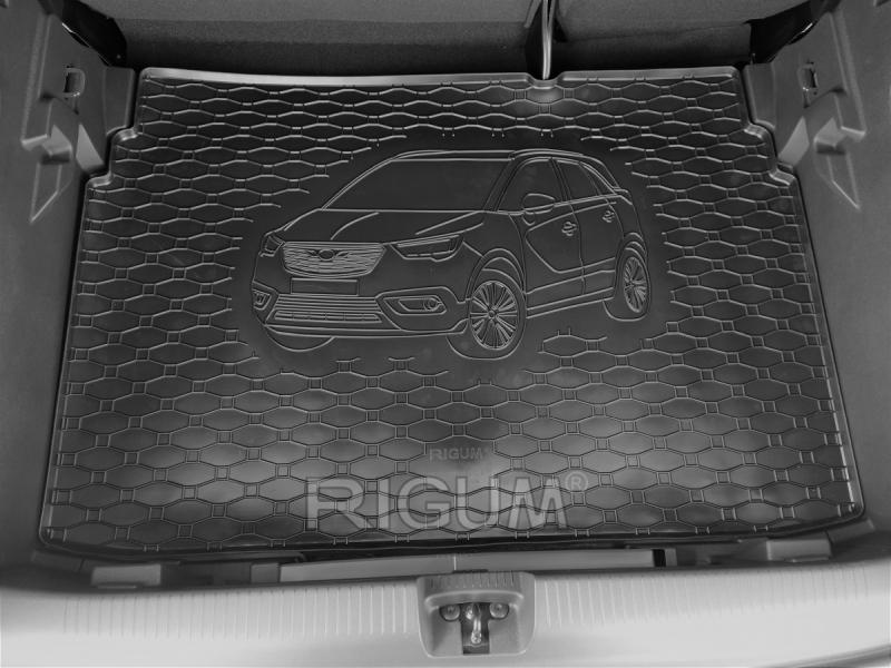 Gumový koberec do kufru (gumová vana do zavazadlového prostoru) vozu Opel Crossland X, od roku výroby 2017 ->, dolní i horní poloha kufru v černém protiskluzovém provedení do českého výrobce Rigum s.r.o., který přesně kopíruje kufr Vašeho vozu.
