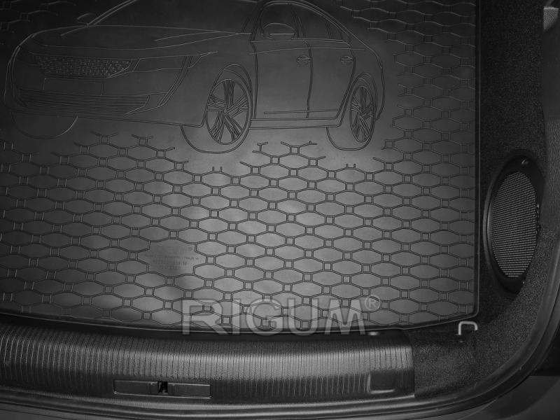 Gumový koberec do kufru neboli gumová vana do zavazadlového prostoru vozu Peugeot 508 PHSV Fastback, od roku výroby 2019 ->, v černém protiskluzovém provedení do České firmy Rigum s.r.o., která přesně kopíruje kufr Vašeho vozu.