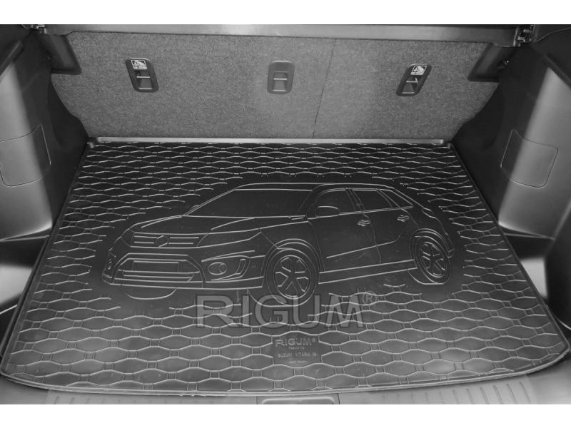 Gumový koberec do kufru neboli gumová vana do zavazadlového prostoru vozu Suzuki Vitara Hybrid, od roku výroby 2020 ->, pro horní polohu, v černém protiskluzovém provedení do České firmy Rigum s.r.o., která přesně kopíruje kufr Vašeho vozu.