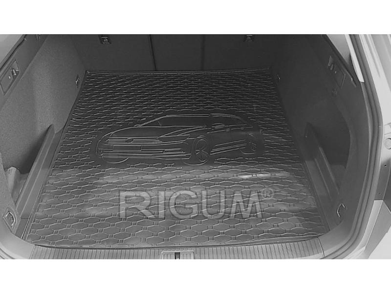 Gumový koberec do kufru (gumová vana do zavazadlového prostoru) vozu Volkswagen Tiguan Passat B8 Variant, provedení pro horní kufr, od roku výroby 2019 ->, v černém protiskluzovém provedení do českého výrobce Rigum s.r.o., který přesně kopíruje kufr Vašeho vozu.