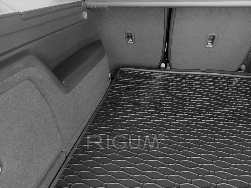 Gumový koberec do kufru neboli gumová vana do zavazadlového prostoru vozu Seat Alhambra, MPV, od roku výroby 2010 ->, provedení pro 7 míst kdy je třetí řada složená v podlaze v černém protiskluzovém provedení do České firmy Rigum s.r.o., která přesně kopíruje kufr Vašeho vozu.