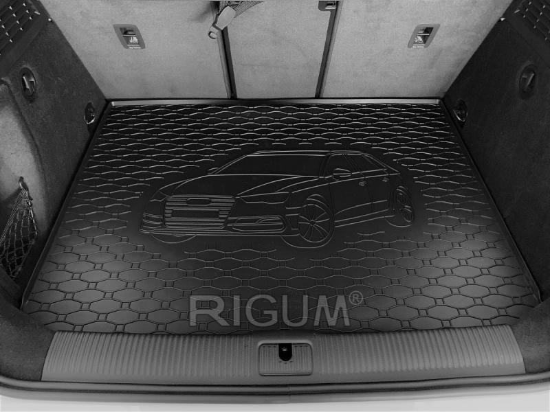 Gumový koberec do kufru (gumová vana do zavazadlového prostoru) vozu AUDI A3 Sportback, od roku výroby 2013 ->, horní poloha kufru v černém protiskluzovém provedení do českého výrobce Rigum s.r.o., který přesně kopíruje kufr Vašeho vozu.