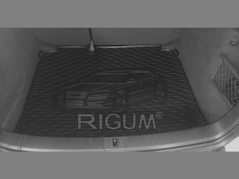 Gumový koberec do kufru (gumová vana do zavazadlového prostoru) vozu AUDI A3 Sportback, roku výroby 2004 - 2013, v černém protiskluzovém provedení do českého výrobce Rigum s.r.o., který přesně kopíruje kufr Vašeho vozu.