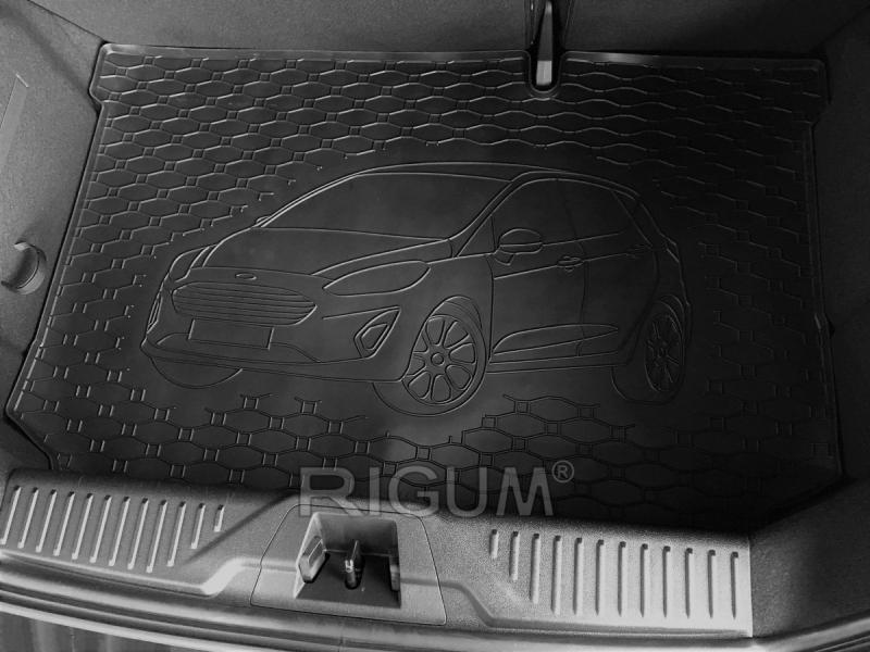 Gumový koberec do kufru neboli gumová vana do zavazadlového prostoru vozu Ford Custom hatchback, od roku výroby 2017 ->, v černém protiskluzovém provedení do České firmy Rigum s.r.o., která přesně kopíruje kufr Vašeho vozu.