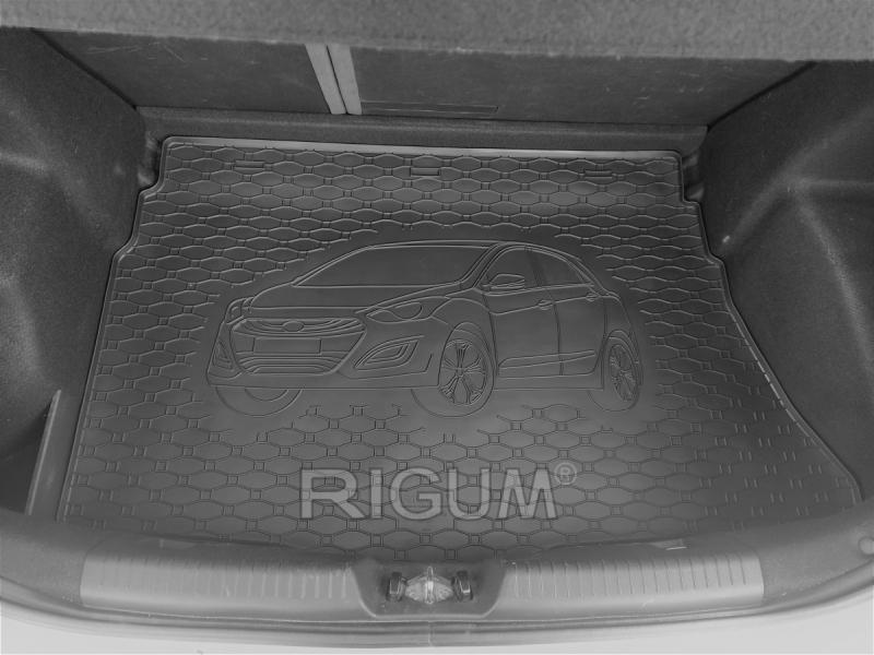 Gumový koberec do kufru (gumová vana do zavazadlového prostoru) vozu Hyundai i30 Hatchback, od roku výroby 2012 ->, v černém protiskluzovém provedení do českého výrobce Rigum s.r.o., který přesně kopíruje kufr Vašeho vozu.