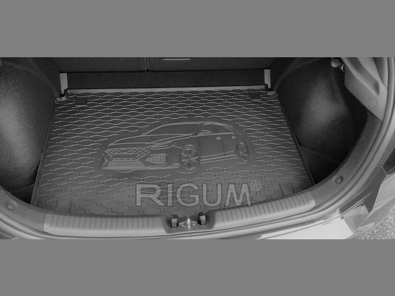 Gumový koberec do kufru (gumová vana do zavazadlového prostoru) vozu Hyundai i30 Hatchback, od roku výroby 2021 ->, v černém protiskluzovém provedení do českého výrobce Rigum s.r.o., který přesně kopíruje kufr Vašeho vozu.