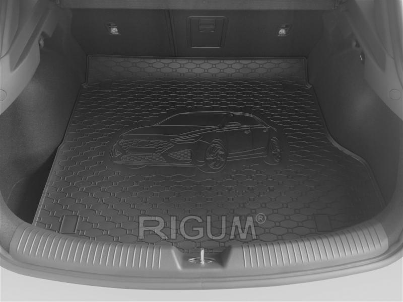 Gumový koberec do kufru (gumová vana do zavazadlového prostoru) vozu Hyundai i30 Fastback MHEV Mild Hybrid, od roku výroby 2021 ->, v černém protiskluzovém provedení do českého výrobce Rigum s.r.o., který přesně kopíruje kufr Vašeho vozu.