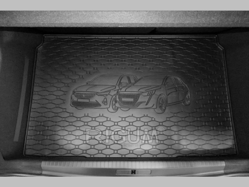 Gumový koberec do kufru neboli gumová vana do zavazadlového prostoru vozu Peugeot 208, od roku výroby 2019 ->, v černém protiskluzovém provedení do České firmy Rigum s.r.o., která přesně kopíruje kufr Vašeho vozu.